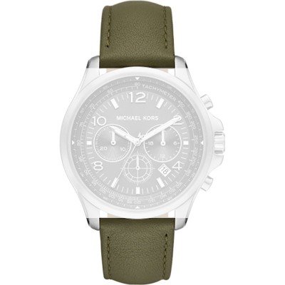 Dit Michael Kors horlogebandje is gemaakt van leer en wordt aan het horloge bevestigd door middel van bandpennen. De band heeft een breedte van 22 mm en wordt gesloten door middel van een gesp. De band heeft een rechte aanzet wat betekent dat deze band geschikt is voor alle Michael Kors horloges met een rechte aanzet.
