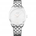 Dit MIDO horlogebandje is gemaakt van roestvrij staal en wordt aan het horloge bevestigd door middel van bandpennen. De band heeft een breedte van 16 mm en wordt gesloten door middel van een vouwsluiting met veiligheidsklep. De band heeft geen rechte aanzet wat betekent dat deze band alleen geschikt is voor de horloges die hieronder worden vermeld.