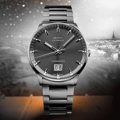 De Commander-serie werd gecreëerd in 1995 en vormt sindsdien het hart van de MIDO-collectie. De Commander Big Date is precies wat u mag verwachten van een horloge met een grote datum. Het datumvenster op 6 uur staat centraal en de lay-out van de wijzerplaat is gericht op wat het moet doen. Een ronde kast met een slanke lunette en een afgeschuinde minutenschaal openen de sunburst wijzerplaat. Duidelijk gedefinieerde wijzers en appliqué indexen met een klein stukje SuperLuminova versterken het praktische karakter van het horloge, dat wordt aangedreven door een Zwitsers automatisch uurwerk met een verbluffende gangreserve van 80 uur.