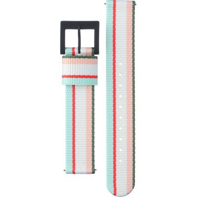 Dit Mondaine horlogebandje is gemaakt van textiel en wordt aan het horloge bevestigd door middel van quick release pushpins. De band heeft een breedte van 16 mm en wordt gesloten door middel van een gesp. De band heeft een rechte aanzet wat betekent dat deze band geschikt is voor alle Mondaine horloges met een rechte aanzet.