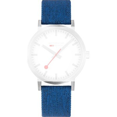 Dit Mondaine horlogebandje is gemaakt van textiel en wordt aan het horloge bevestigd door middel van quick release pushpins. De band heeft een breedte van 20 mm en wordt gesloten door middel van een gesp. De band heeft een rechte aanzet wat betekent dat deze band geschikt is voor alle Mondaine horloges met een rechte aanzet.