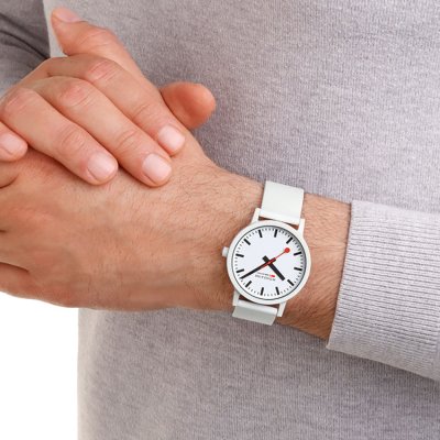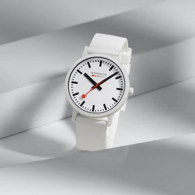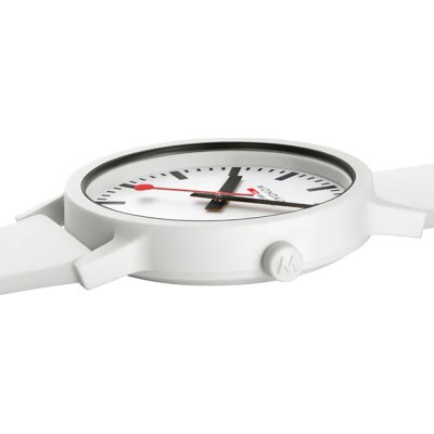 Dit Mondaine horloge heeft een kast gemaakt van Kunststof met een diameter van 41 mm en is voorzien van een textiel band. In de kast bevindt zich een Ronda kwaliteitsuurwerk en is afgewerkt met Gehard mineraalglasglas.
