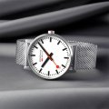 Dit Mondaine horloge heeft een kast gemaakt van Roestvrijstaal met een diameter van 43 mm en is voorzien van een Roestvrijstaal band. In de kast bevindt zich een Ronda kwaliteitsuurwerk en is afgewerkt met Saffierglas.