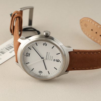Dit Mondaine horloge heeft een kast gemaakt van Roestvrijstaal met een diameter van 43 mm en is voorzien van een leren band. In de kast bevindt zich een Ronda kwaliteitsuurwerk en is afgewerkt met Saffierglas.