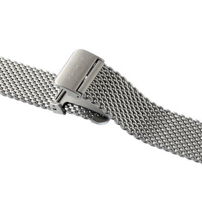 Dit Mondaine horlogebandje is gemaakt van roestvrij staal en wordt aan het horloge bevestigd door middel van quick release pushpins. De band heeft een breedte van 18 mm en wordt gesloten door middel van een gesp vouwsluiting. De band heeft een rechte aanzet wat betekent dat deze band geschikt is voor alle Mondaine horloges met een rechte aanzet.