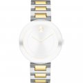 Dit Movado horlogebandje is gemaakt van roestvrij staal en wordt aan het horloge bevestigd door middel van stalen pennen. De band heeft een breedte van 16 mm en wordt gesloten door middel van een vlindersluiting met drukknoppen. De band heeft geen rechte aanzet wat betekent dat deze band alleen geschikt is voor de horloges die hieronder worden vermeld.