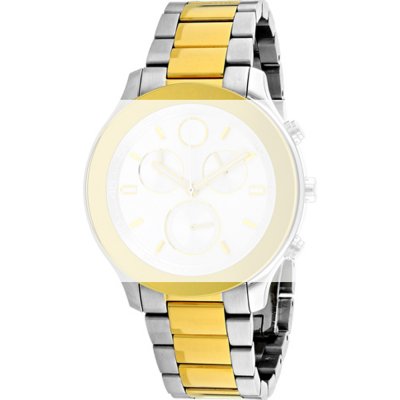 Dit Movado horlogebandje is gemaakt van roestvrij staal en wordt aan het horloge bevestigd door middel van bandpennen. De band heeft een breedte van 19 mm en wordt gesloten door middel van een vlindersluiting met drukknoppen. De band heeft geen rechte aanzet wat betekent dat deze band alleen geschikt is voor de horloges die hieronder worden vermeld.