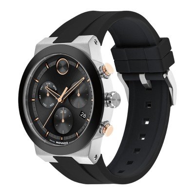Dit Movado horloge heeft een kast gemaakt van Roestvrijstaal met een diameter van 44 mm en is voorzien van een Rubber band. In de kast bevindt zich een Ronda kwaliteitsuurwerk en is afgewerkt met K1 Mineraalglas.
