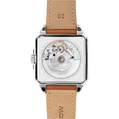 De Movado Heritage collectie put uit de rijke geschiedenis van het merk en brengt vintage horloges terug naar vandaag. De geometrische elegantie van Art Deco wordt weerspiegeld in de 'Heritage 1917' horloges. Dit horloge is een herinterpretatie van de eerste vierkante Movado horloges uit 1917 en heeft een gevormde kast met duidelijk gedefinieerde lijnen met een architectonische uitstraling. Recente updates van het origineel zijn een nieuw ontworpen unilink-band (of vintage-geïnspireerde Italiaanse gelooid lederen band) en een sunburst wijzerplaat, met subtiele tonale verschuivingen, die aan een Deco skyline doen denken. Het Zwitserse Sellita SW200 automatische uurwerk, met aangepaste Deco-design rotor, is voorzien van soepele, 'vegende' wijzers en is zichtbaar via het saffierglas kastdeksel.