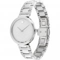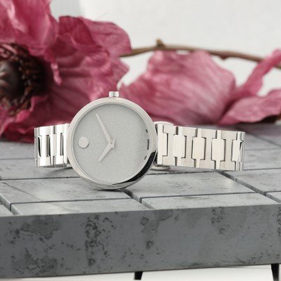 Dit Movado horloge heeft een kast gemaakt van Roestvrijstaal met een diameter van 32 mm en is voorzien van een Roestvrijstaal band. In de kast bevindt zich een Ronda kwaliteitsuurwerk en is afgewerkt met Saffierglas.