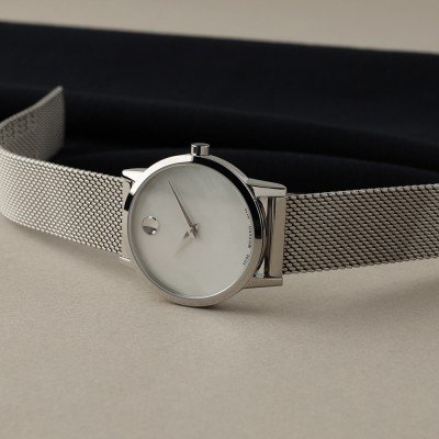 Dit Movado horloge heeft een kast gemaakt van Roestvrijstaal met een diameter van 28 mm en is voorzien van een Roestvrijstaal band. In de kast bevindt zich een ETA kwaliteitsuurwerk en is afgewerkt met Saffierglas.