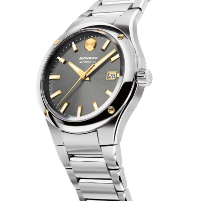 Het Museum Imperiale horloge is vernoemd naar en geïnspireerd op het gelijknamige horloge uit 1981, en eert de nalatenschap van het modernistische Movado sporthorlogeontwerp. Het iconische stippenmotief van de Museum Dial is gekopieerd naar vier gebalanceerde, verzonken punten op de lunette, waardoor het horloge een tactiele structuur krijgt. Het strakke, moderne silhouet wordt weerspiegeld in een sunburst wijzerplaat met datumvenster en uitgesproken toegepaste indexen. Een sculpturale roestvrijstalen armband met drie rijen maakt de look compleet.
