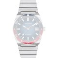Dit Movado horlogebandje is gemaakt van roestvrij staal en wordt aan het horloge bevestigd door middel van schroeven. De band heeft een breedte van 20 mm en wordt gesloten door middel van een vlindersluiting met drukknoppen. De band heeft geen rechte aanzet wat betekent dat deze band alleen geschikt is voor de horloges die hieronder worden vermeld.