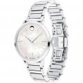 Dit Movado horloge heeft een kast gemaakt van Roestvrijstaal met een diameter van 35 mm en is voorzien van een Roestvrijstaal band. In de kast bevindt zich een ETA kwaliteitsuurwerk en is afgewerkt met Saffierglas.