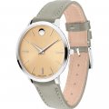 Dit Movado horloge heeft een kast gemaakt van Roestvrijstaal met een diameter van 35 mm en is voorzien van een leren band. In de kast bevindt zich een ETA kwaliteitsuurwerk en is afgewerkt met Saffierglas.
