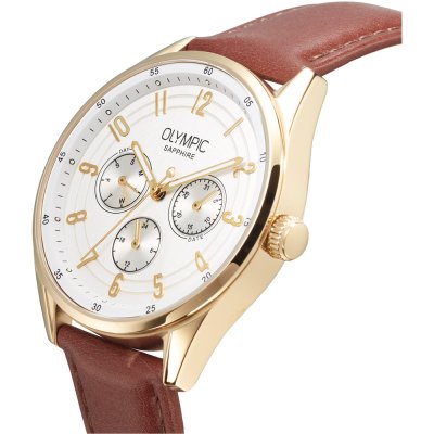 Dit Olympic horloge heeft een kast gemaakt van Roestvrijstaal met een diameter van 40 mm en is voorzien van een leren band. In de kast bevindt zich een Miyota kwaliteitsuurwerk en is afgewerkt met Saffierglas.
