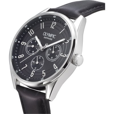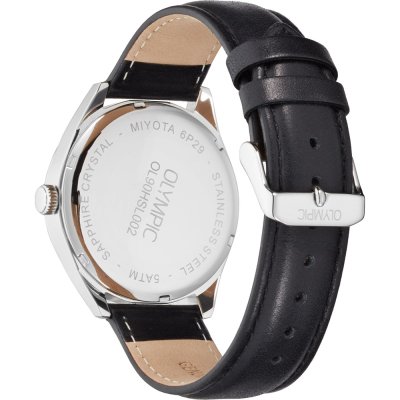 Dit Olympic horloge heeft een kast gemaakt van Roestvrijstaal met een diameter van 40 mm en is voorzien van een leren band. In de kast bevindt zich een Miyota kwaliteitsuurwerk en is afgewerkt met Saffierglas.