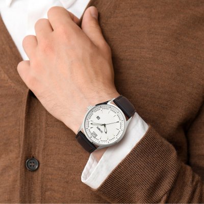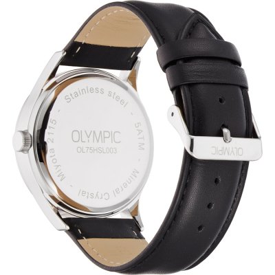 Dit Olympic horloge heeft een kast gemaakt van Roestvrijstaal met een diameter van 43 mm en is voorzien van een leren band. In de kast bevindt zich een Miyota kwaliteitsuurwerk en is afgewerkt met Mineraalglas.