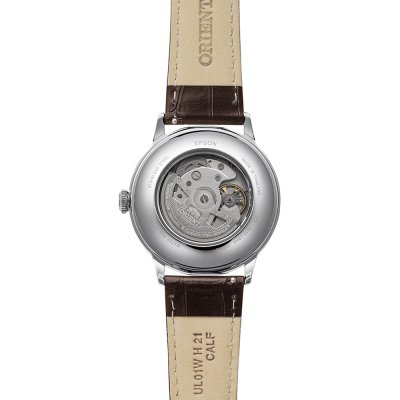 Dit Orient horloge heeft een kast gemaakt van Roestvrijstaal met een diameter van 40 mm en is voorzien van een leren band. In de kast bevindt zich een Orient kwaliteitsuurwerk en is afgewerkt met Mineraalglas.