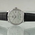 Dit Orient horloge heeft een kast gemaakt van Roestvrijstaal met een diameter van 38 mm en is voorzien van een leren band.