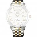 Dit Orient horlogebandje is gemaakt van roestvrij staal en wordt aan het horloge bevestigd door middel van bandpennen. De band heeft een breedte van 20 mm en wordt gesloten door middel van een vouwsluiting met drukknoppen. De band heeft geen rechte aanzet wat betekent dat deze band alleen geschikt is voor de horloges die hieronder worden vermeld.