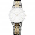 Dit Orient horlogebandje is gemaakt van roestvrij staal en wordt aan het horloge bevestigd door middel van bandpennen. De band heeft een breedte van 18 mm en wordt gesloten door middel van een vouwsluiting met drukknoppen. De band heeft geen rechte aanzet wat betekent dat deze band alleen geschikt is voor de horloges die hieronder worden vermeld.