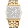 Dit Orient horlogebandje is gemaakt van roestvrij staal en wordt aan het horloge bevestigd door middel van bandpennen. De band heeft een breedte van 24 mm en wordt gesloten door middel van een vouwsluiting met drukknoppen. De band heeft geen rechte aanzet wat betekent dat deze band alleen geschikt is voor de horloges die hieronder worden vermeld.