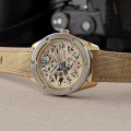 De M34 Avant-garde F8 Skeleton is een buitengewoon horloge. Niet alleen vanwege zijn uiterlijk met een dubbellaags precisie gegoten opengewerkte wijzerplaat, maar ook vanwege zijn geavanceerde F8F64 uurwerk. Het ontwerp van het horloge is dynamisch en combineert industriële elementen met een complexe structuur die het geavanceerde en technologische gevoel van het horloge benadrukken. Het in huis gemaakte F8F64-uurwerk is versierd met Geneefse strepen en heeft een gedeeltelijk uitgeholde basisplaat die het blauwe siliconen ankerrad onthult, wat nog een extra laag toevoegt aan dit uniek uitziende horloge. De zeer nauwkeurige productietechnologie die is gebruikt om dit ankerrad te maken, is gepatenteerd op Japanse en internationale markten.