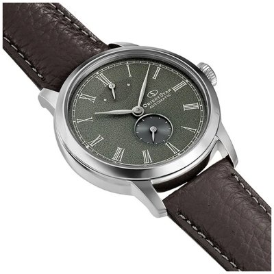 Dit Orient horloge heeft een kast gemaakt van Roestvrijstaal met een diameter van 39 mm en is voorzien van een leren band. In de kast bevindt zich een Epson kwaliteitsuurwerk en is afgewerkt met Mineraalglas.