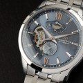 De tweelaagse wijzerplaat van dit prachtige open-hart horloge heeft een visgraatpatroon toplaag die doet denken aan een herenkostuum. De onderste laag heeft een paisley dessin dat doet denken aan de voering van dat kostuum. Ook de opening in de wijzerplaat heeft een paisley vorm. De gelaagdheid creëert niet alleen een unieke look, maar ook een groot gevoel van diepte in het horloge, waardoor dit niet alleen een erg praktisch, maar ook business-casual horloge is en de ideale metgezel voor de heer van vandaag die op zoek is naar een buitengewoon stijlvol horloge.