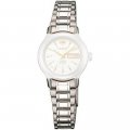 Dit Orient horlogebandje is gemaakt van roestvrij staal en wordt aan het horloge bevestigd door middel van bandpennen. De band heeft een breedte van 12 mm en wordt gesloten door middel van een vouwsluiting met drukknoppen. De band heeft geen rechte aanzet wat betekent dat deze band alleen geschikt is voor de horloges die hieronder worden vermeld.