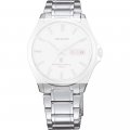 Dit Orient horlogebandje is gemaakt van roestvrij staal en wordt aan het horloge bevestigd door middel van bandpennen. De band heeft een breedte van 18 mm en wordt gesloten door middel van een vouwsluiting met drukknoppen. De band heeft geen rechte aanzet wat betekent dat deze band alleen geschikt is voor de horloges die hieronder worden vermeld.