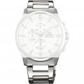Dit Orient horlogebandje is gemaakt van roestvrij staal en wordt aan het horloge bevestigd door middel van bandpennen. De band heeft een breedte van 20 mm en wordt gesloten door middel van een vouwsluiting met drukknoppen. De band heeft geen rechte aanzet wat betekent dat deze band alleen geschikt is voor de horloges die hieronder worden vermeld.