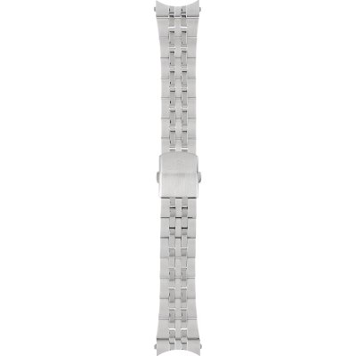Dit Orient horlogebandje is gemaakt van roestvrij staal en wordt aan het horloge bevestigd door middel van stalen pennen. De band heeft een breedte van 21 mm en wordt gesloten door middel van een vouwsluiting met drukknoppen. De band heeft geen rechte aanzet wat betekent dat deze band alleen geschikt is voor de horloges die hieronder worden vermeld.