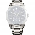 Dit Orient horlogebandje is gemaakt van roestvrij staal en wordt aan het horloge bevestigd door middel van bandpennen. De band heeft een breedte van 20 mm en wordt gesloten door middel van een vouwsluiting met drukknoppen. De band heeft geen rechte aanzet wat betekent dat deze band alleen geschikt is voor de horloges die hieronder worden vermeld.