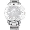 Dit Orient horlogebandje is gemaakt van roestvrij staal en wordt aan het horloge bevestigd door middel van bandpennen. De band heeft een breedte van 20 mm en wordt gesloten door middel van een vouwsluiting met drukknoppen en veiligheidsklep. De band heeft geen rechte aanzet wat betekent dat deze band alleen geschikt is voor de horloges die hieronder worden vermeld.