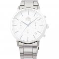 Dit Orient horlogebandje is gemaakt van roestvrij staal en wordt aan het horloge bevestigd door middel van bandpennen. De band heeft een breedte van 20 mm en wordt gesloten door middel van een vouwsluiting met drukknoppen. De band heeft geen rechte aanzet wat betekent dat deze band alleen geschikt is voor de horloges die hieronder worden vermeld.