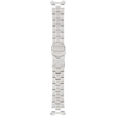 Dit Orient horlogebandje is gemaakt van roestvrij staal en wordt aan het horloge bevestigd door middel van bandpennen. De band heeft een breedte van 22 mm en wordt gesloten door middel van een vouwsluiting met drukknoppen en veiligheidsklep. De band heeft geen rechte aanzet wat betekent dat deze band alleen geschikt is voor de horloges die hieronder worden vermeld.