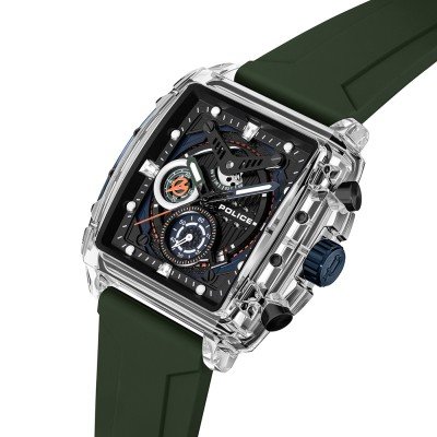 Dit Police horloge heeft een kast gemaakt van Kunsthars met een diameter van 48 mm en is voorzien van een Rubber band. In de kast bevindt zich een Seiko Instruments Inc. kwaliteitsuurwerk en is afgewerkt met Mineraalglas.