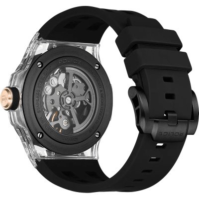 Dit Police horloge heeft een kast gemaakt van Kunsthars met een diameter van 44 mm en is voorzien van een Rubber band. In de kast bevindt zich een CN kwaliteitsuurwerk en is afgewerkt met Mineraalglas.