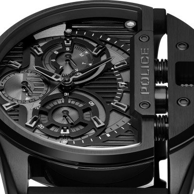 Dit Police horloge heeft een kast gemaakt van Roestvrijstaal met een diameter van 45 mm en is voorzien van een Rubber band. In de kast bevindt zich een Seiko Instruments Inc. kwaliteitsuurwerk en is afgewerkt met Mineraalglas.