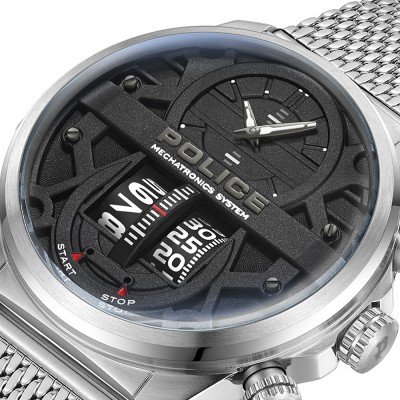 Dit Police horloge heeft een kast gemaakt van Roestvrijstaal met een diameter van 44 mm en is voorzien van een Roestvrijstaal band. In de kast bevindt zich een Bao Jie kwaliteitsuurwerk en is afgewerkt met Mineraalglas.