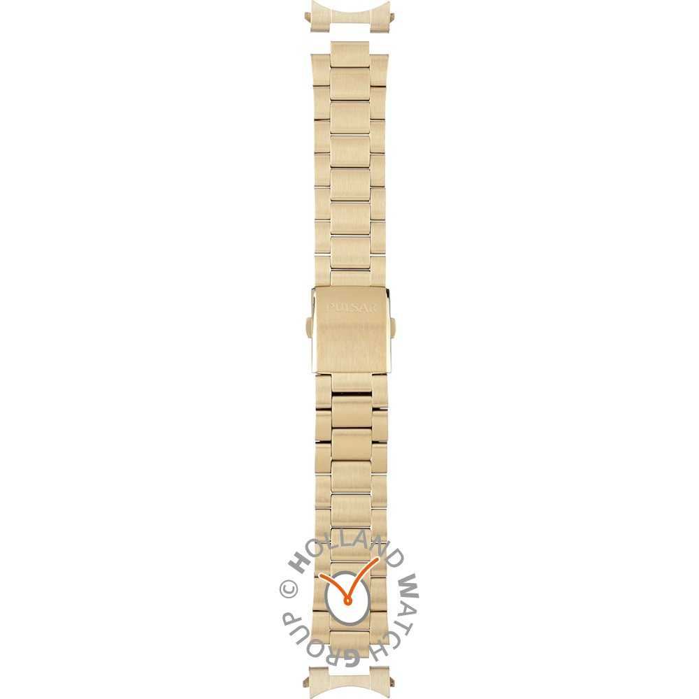 Dit Pulsar horlogebandje is gemaakt van roestvrij staal en wordt aan het horloge bevestigd door middel van bandpennen. De band heeft een breedte van 22 mm en wordt gesloten door middel van een vouwsluiting met drukknoppen. De band heeft geen rechte aanzet wat betekent dat deze band alleen geschikt is voor de horloges die hieronder worden vermeld.