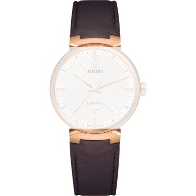 Dit Rado horlogebandje is gemaakt van leer en wordt aan het horloge bevestigd door middel van pen en buis. De band heeft een breedte van 21 mm en wordt gesloten door middel van een gesp. De band heeft geen rechte aanzet wat betekent dat deze band alleen geschikt is voor de horloges die hieronder worden vermeld.