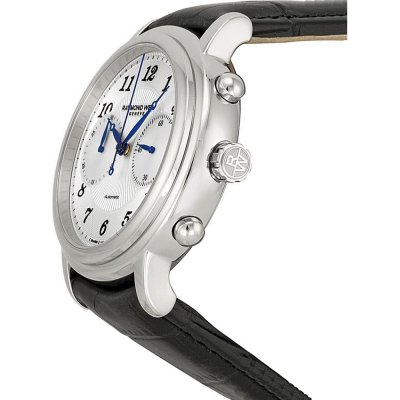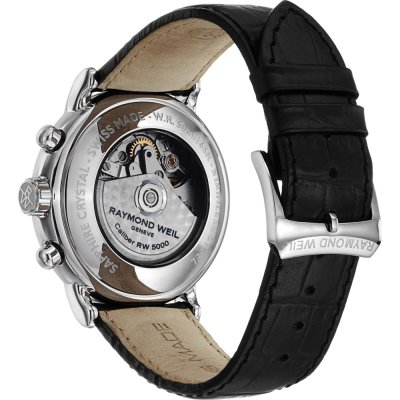 Dit Raymond Weil horloge heeft een kast gemaakt van Roestvrijstaal met een diameter van 41.5 mm en is voorzien van een leren band. In de kast bevindt zich een Sellita kwaliteitsuurwerk en is afgewerkt met Saffierglas.