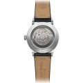 De Raymond Weil Millesime collectie is geïnspireerd op de elegantie van horloges uit het midden van de vorige eeuw, maar dan in een moderne context. In plaats van de makkelijke weg te kiezen en ontwerpen uit het verleden te kopiëren, brengt Raymond Weil ons een frisse interpretatie van vintage charme, wat resulteert in een horloge dat zowel tijdloos als actueel aanvoelt. Het Millesima horloge zal zowel liefhebbers van vintage stijl als 'haute horlogerie' aanspreken. De 'sector' wijzerplaat heeft contrasterende afwerkingen, het uurspoor is glad, het minutenspoor is gekarteld en het centrale gedeelte van de wijzerplaat heeft een geborstelde verticale structuur. Drie verschillende concentrische banen, oplopend in grootte van seconden (180 markers) naar minuten (60 markers) en uren (12 markers), voor een nauwkeurige aflezing van de tijd, met de kleine seconde op 6 uur, geplaatst in een verzonken cirkel. De wijzerplaat is gevat in een roestvrijstalen kast met AR gecoat saffierglas. De lunette is afgewerkt met een verticale satijnen borstelstuctuur die contrasteert met de hoogglans gepolijste afschuining. Aangedreven door een automatisch RW4251 (gebaseerd op de SW260) uurwerk met een aangepaste W-vormige rotor, met 31 juwelen, kloppend op 28.800 bph met 41 uur gangreserve, combineert de Millesime retro charme met een modern uurwerk en aandacht voor detail, wat allemaal bijdraagt aan het uitstekende afwerkingsniveau.