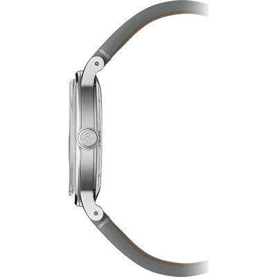 De Raymond Weil Millesime collectie is geïnspireerd op de elegantie van horloges uit het midden van de vorige eeuw, maar dan in een moderne context. In plaats van de makkelijke weg te kiezen en ontwerpen uit het verleden te kopiëren, brengt Raymond Weil ons een frisse interpretatie van vintage charme, wat resulteert in een horloge dat zowel tijdloos als actueel aanvoelt. Het Millesima horloge zal zowel liefhebbers van vintage stijl als 'haute horlogerie' aanspreken. De 'sector' wijzerplaat heeft contrasterende afwerkingen, het uurspoor is glad, het minutenspoor is gekarteld en het centrale gedeelte van de wijzerplaat heeft een geborstelde verticale structuur. Drie verschillende concentrische banen, oplopend in grootte van seconden (180 markers) naar minuten (60 markers) en uren (12 markers), voor een nauwkeurige aflezing van de tijd, met de kleine seconde op 6 uur, geplaatst in een verzonken cirkel. De wijzerplaat is gevat in een roestvrijstalen kast met AR gecoat saffierglas. De lunette is afgewerkt met een verticale satijnen borstelstuctuur die contrasteert met de hoogglans gepolijste afschuining. Aangedreven door een automatisch RW4251 (gebaseerd op de SW260) uurwerk met een aangepaste W-vormige rotor, met 31 juwelen, kloppend op 28.800 bph met 41 uur gangreserve, combineert de Millesime retro charme met een modern uurwerk en aandacht voor detail, wat allemaal bijdraagt aan het uitstekende afwerkingsniveau.