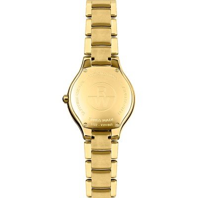 Het Raymond Weil Noemia dameshorloge is vernoemd naar de kleindochter van de oprichter. Het horloge weerspiegelt de moderne vrouw: delicaat en vrouwelijk, maar toch volwassen en zelfverzekerd. Het Noemia horloge is verkrijgbaar in verschillende ontwerpen en kleurstellingen, die allemaal één ding gemeen hebben: het zijn zeer stijlvolle dameshorloges. Dit goudkleurige Noemia-horloge heeft een parelmoeren wijzerplaat en 62 echte diamanten.