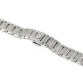 Dit Raymond Weil horlogebandje is gemaakt van roestvrij staal en wordt aan het horloge bevestigd door middel van bandpennen. De band heeft een breedte van 14 mm en wordt gesloten door middel van een vlindersluiting met drukknoppen. De band heeft geen rechte aanzet wat betekent dat deze band alleen geschikt is voor de horloges die hieronder worden vermeld.