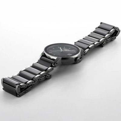 Dit Roamer horloge heeft een kast gemaakt van Roestvrijstaal met een diameter van 30 mm en is voorzien van een Roestvrij staal en keramiek band. In de kast bevindt zich een Ronda kwaliteitsuurwerk en is afgewerkt met Saffierglas.
